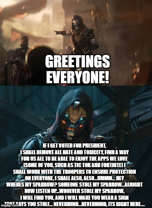 If you find this site serviceableness, please support us by sharing this posts to your preference social media accounts like Facebook, Instagram and so on or you can also Get this blog page with the title Cayde 6 Meme by using Ctrl + D for devices a laptop with a Windows operating system or Command + D for laptops with an Apple operating system. If you use a smartphone, you can also use the drawer menu of the browser you are using. Whether it's a Windows, Mac, iOS or Android operating system, you will still be able to bookmark this web.